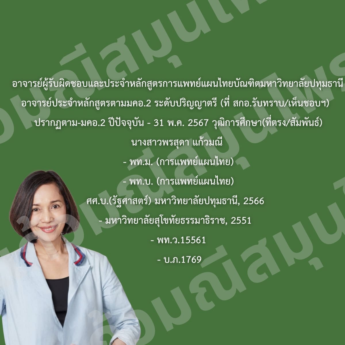 อาจารย์ผู้รับผิดชอบและประจำหลักสูตรการแพทย์แผนไทยบัณฑิตมหาวิทยาลัยปทุมธานี