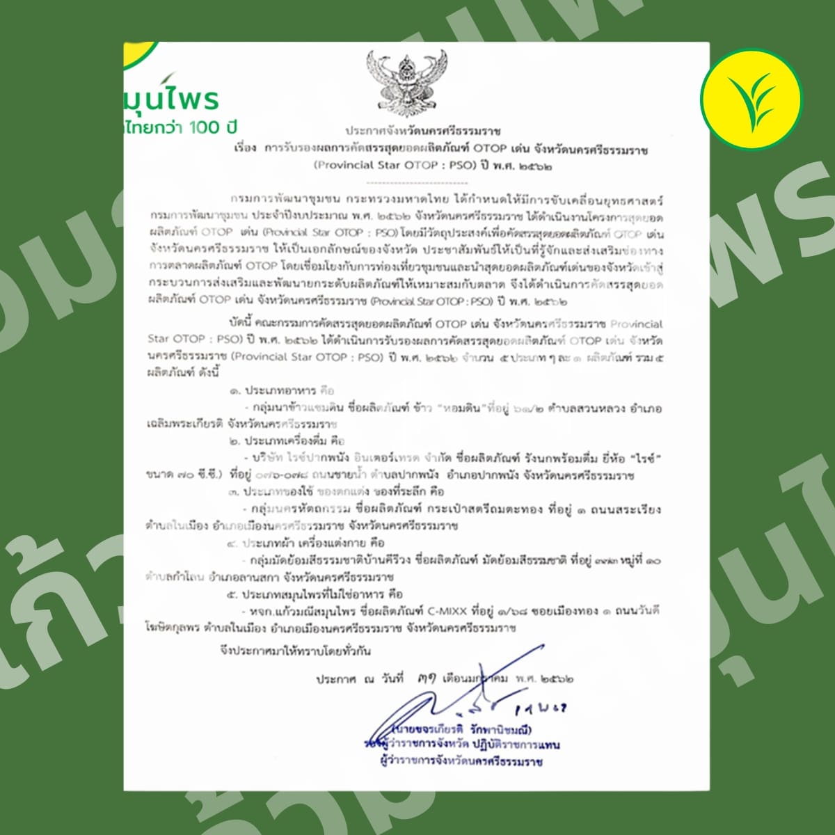 รางวัลสุดยอดผลิตภัณฑ์ OTOP เด่นจังหวัดนครศรีรรมราช Provincial star OTOP:PSO ประจำปี 2562