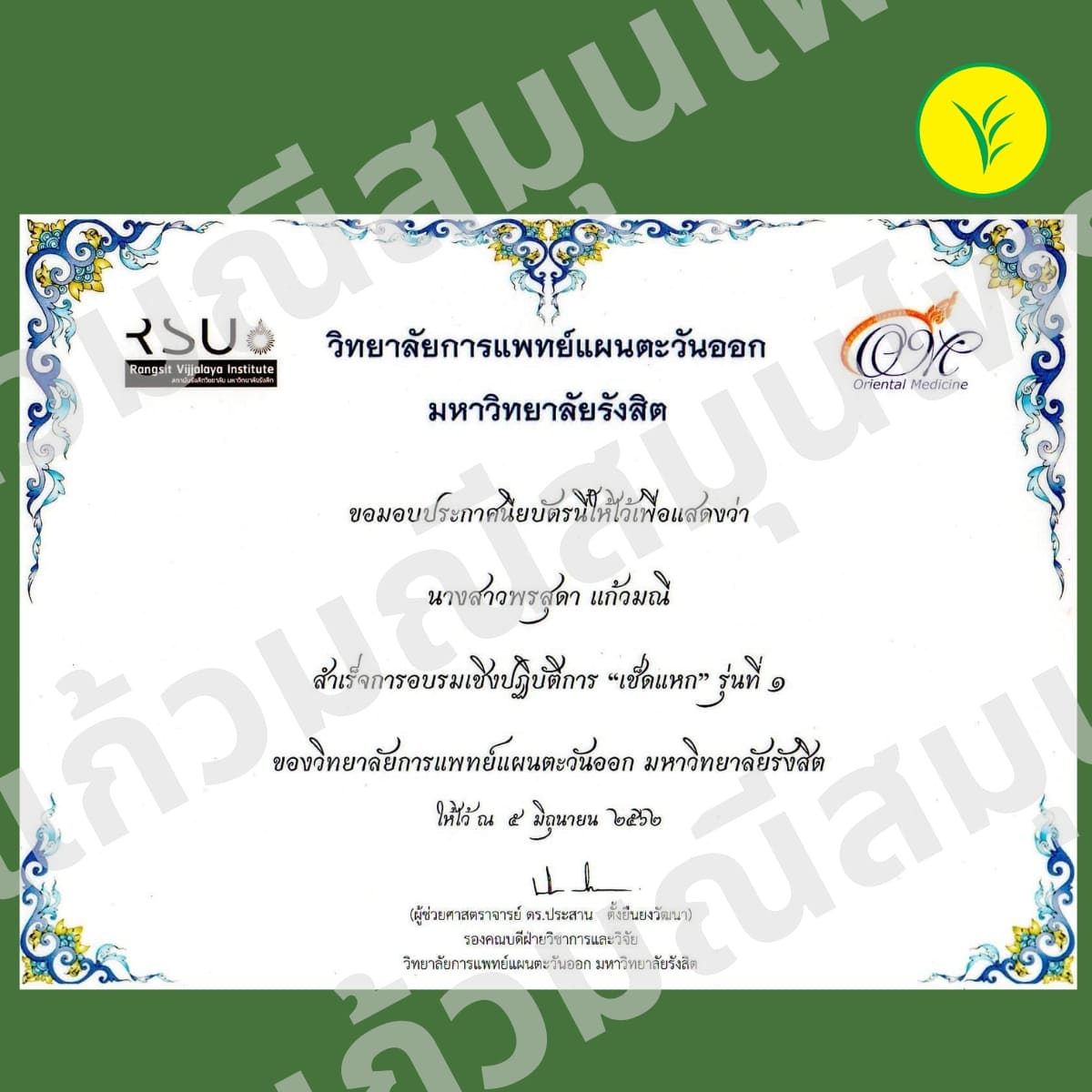 อบรมเชิงปฏิบัติการ "เช็ดแหก" รุ่นที่ 1 วิทยาลัยการแพทย์แผนตะวันออก มหาวิทยาลัยรังสิต